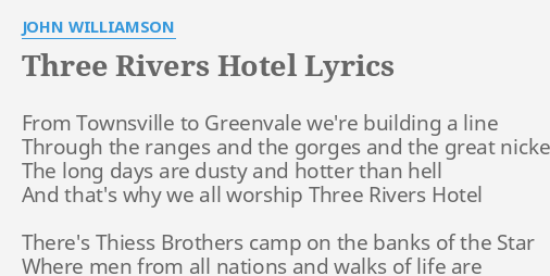1 Three Rivers Hotel Lyrics From Townsville to Greenvale were building a line Through the ranges and the gorges and the great nickel mine The long days are dusty and hotter than hell And thats. And thats why we all worship Three Rivers Hotel Theres Thiess Brothers camp on the banks of the Star Where men from all nations and walks of life are And its funny to listen to the stories they tell Every night round the bar at Three Rivers Hotel And we curse at the things that go wrong through the day.